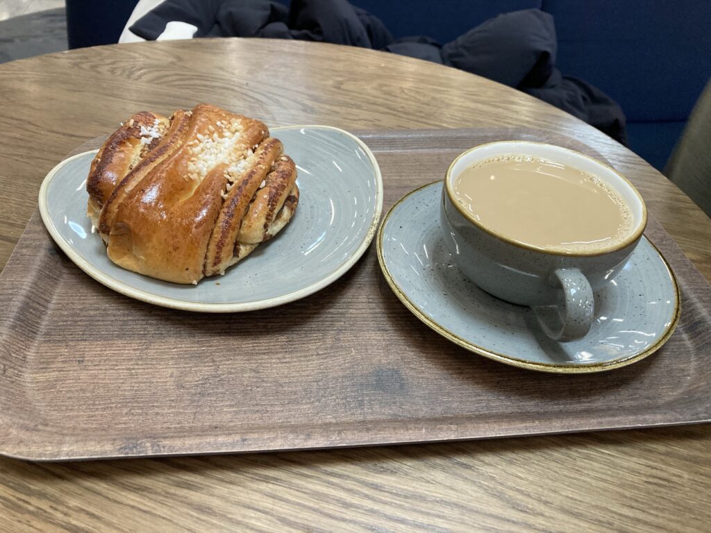 初めて食べるシナモンロール、ガリッとした上にかかっているお砂糖とハーブ?のような香りが独特でした。大きいので2人で半分こしました。