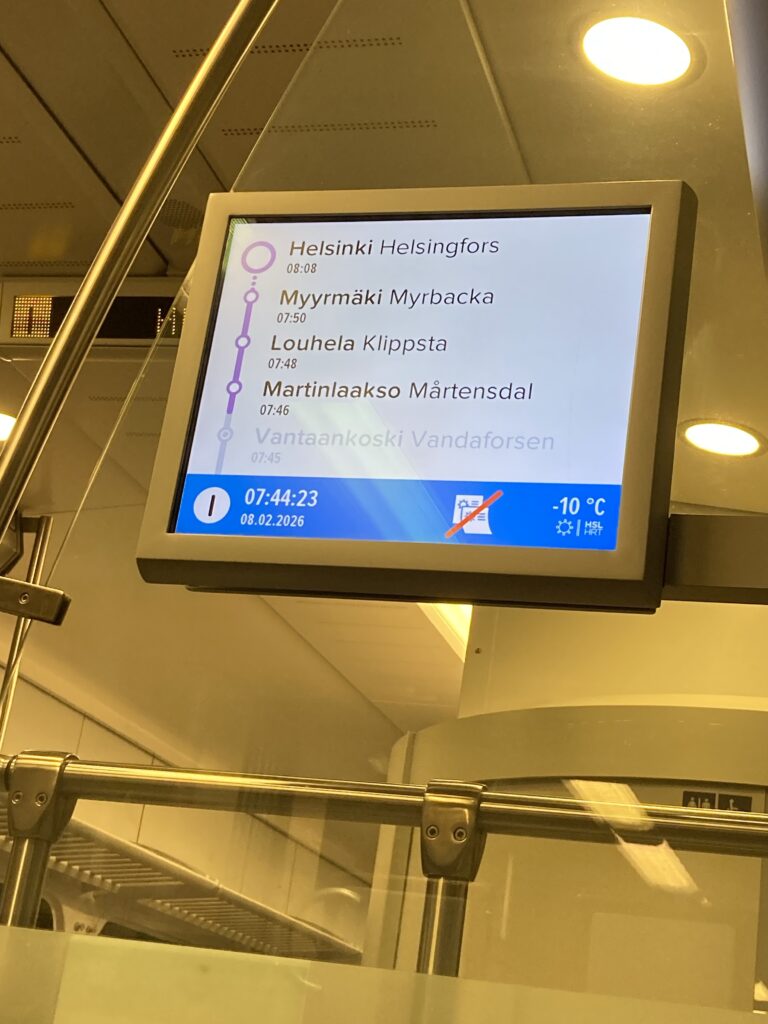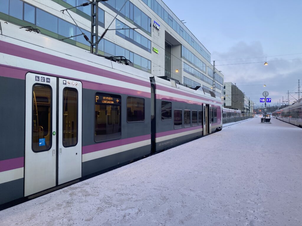 私たちは「HSL」というアプリを日本でダウンロードして、クレジットカードも紐付けしてたので、この電車のホームでABCゾーンのシングルチケットを購入しました。