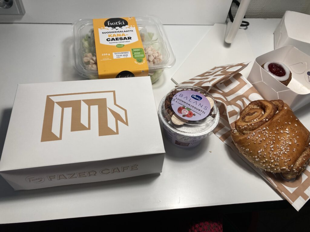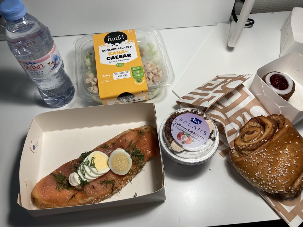 ファッツェルカフェで、サーモンのサンドイッチとシナモンロールを買いました。(ルーネベリタルトは朝のファッツェルで購入)