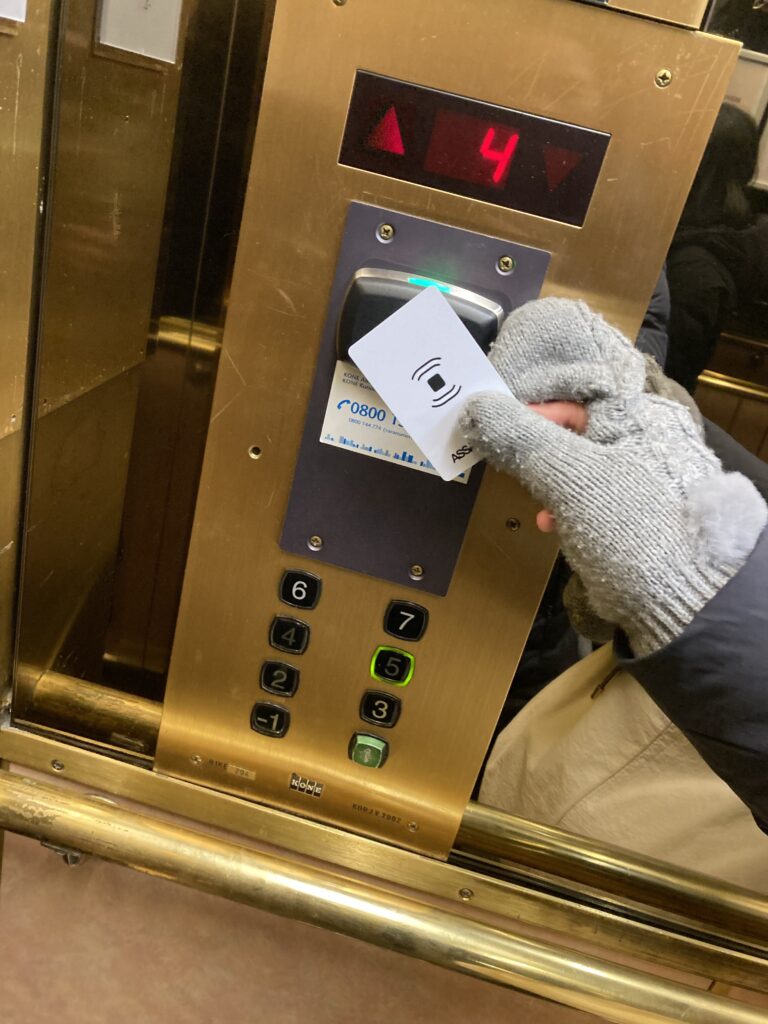 エレベーターを出たり入ったりしてました。